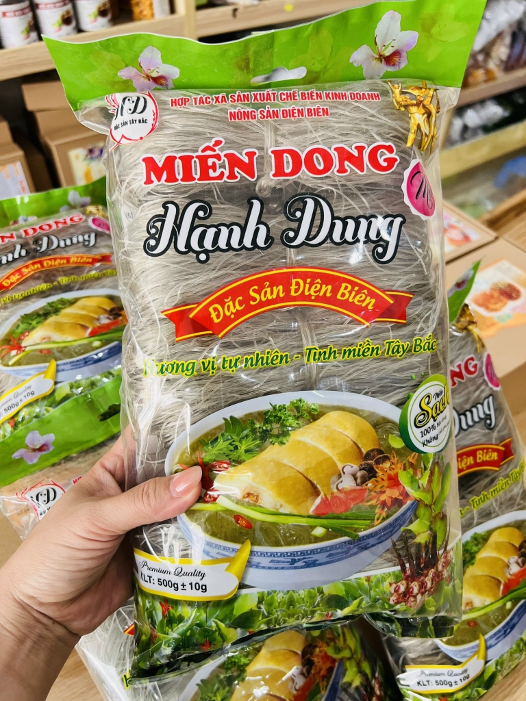 Miến dong Điện Biên , mềm ngon ăn bao phê cả nhà ơi ời Miến được làm 100% từ củ dong ( trên đó người ta gọi là củ đót ) sợi to, dai ngon lắm luôn , sản phẩm mang lại sự khác biệt với công thức đặc trưng của người Điện Biên