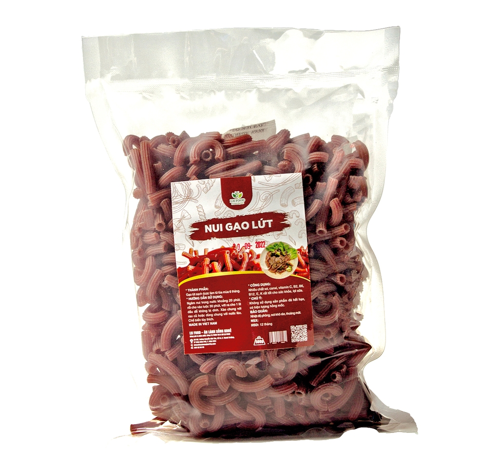 Nui ống làm từ gạo lứt với thành phần nguyên liệu 100% tự nhiên, không sử dụng phụ gia độc hại, an toàn tuyệt đối, chứa hàm lượng các chất dinh dưỡng có từ trong gạo lứt đỏ, rất tốt cho sức khỏe người dùng