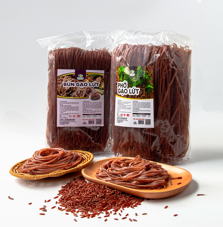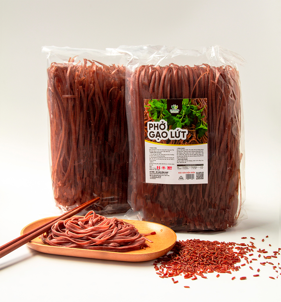 Sợi phở được chế biến từ bột gạo lứt đỏ Điện Biên - loạt gạo lứt có chất lượng cao.